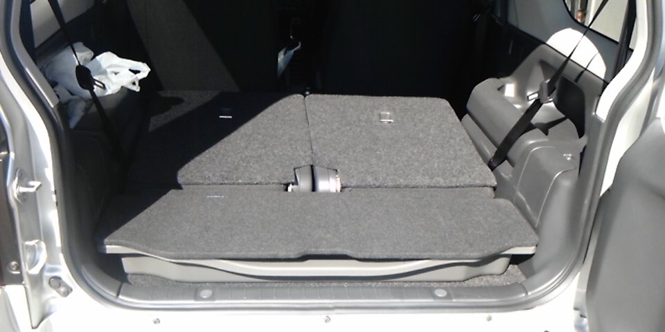 現在、後部座席は倒しています。